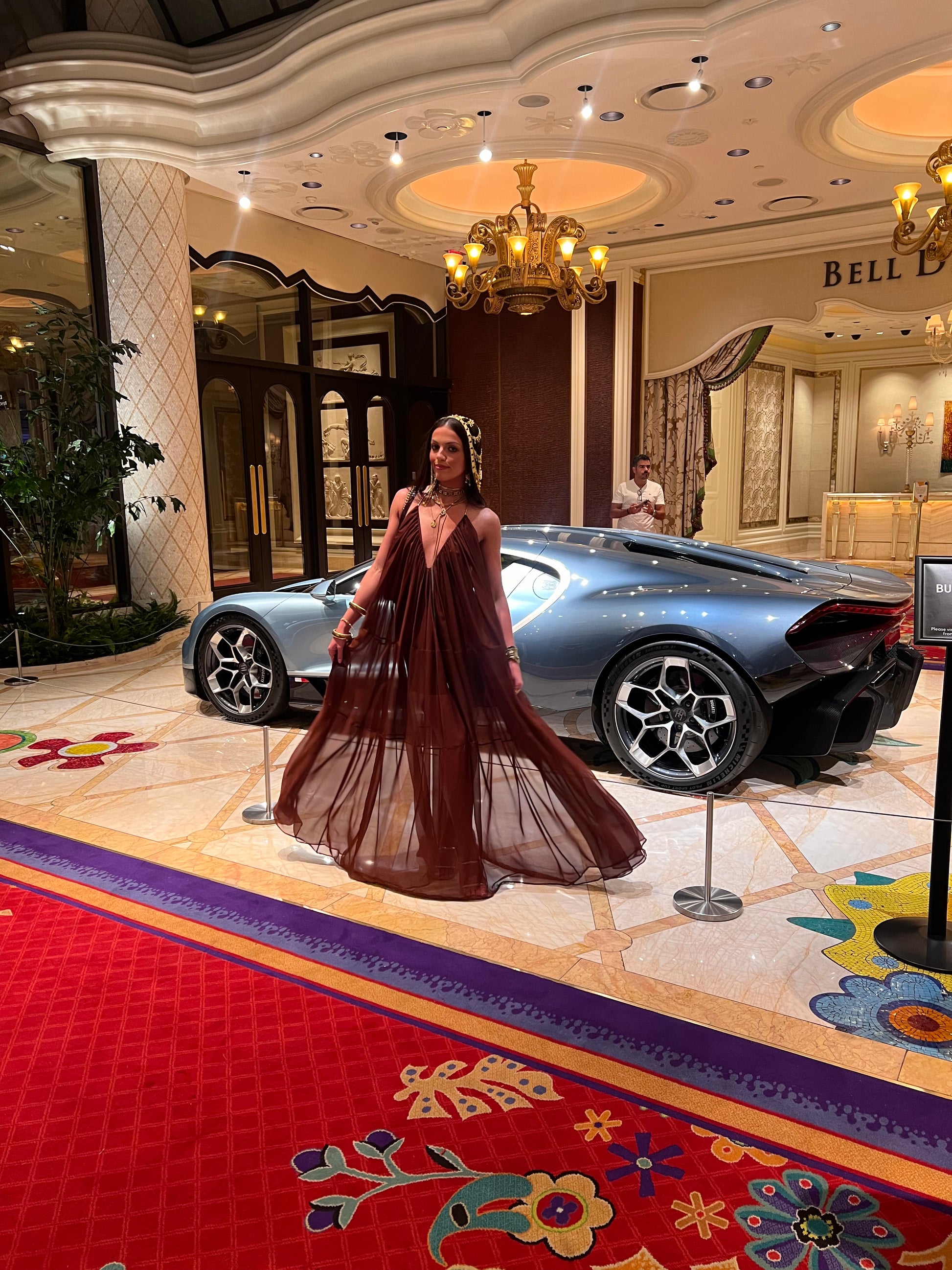 The Cleopatra Gown is not just a dress — it’s a transformation. Rich, chocolate-burgundy chiffon cascades endlessly in flowy layers from a deep V neckline. Voluminous, ethereal, and impossibly stunning — this gown doesn’t just make you look like a goddess. It makes you feel it.