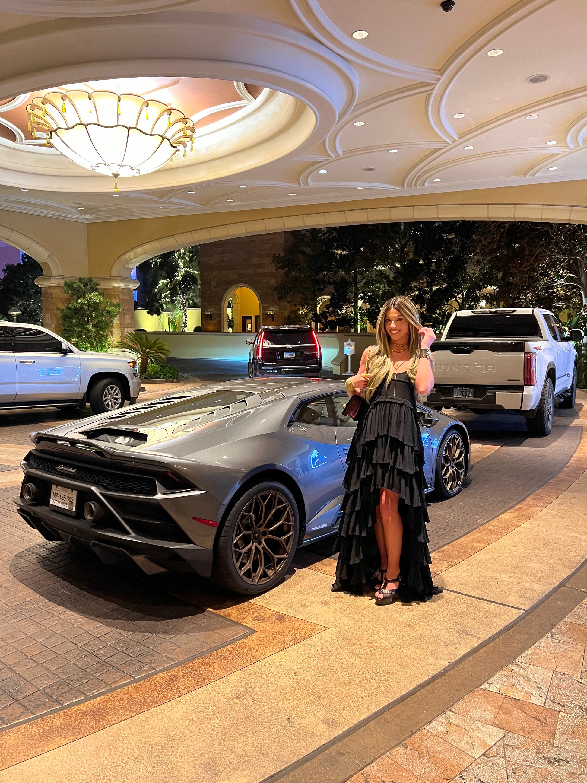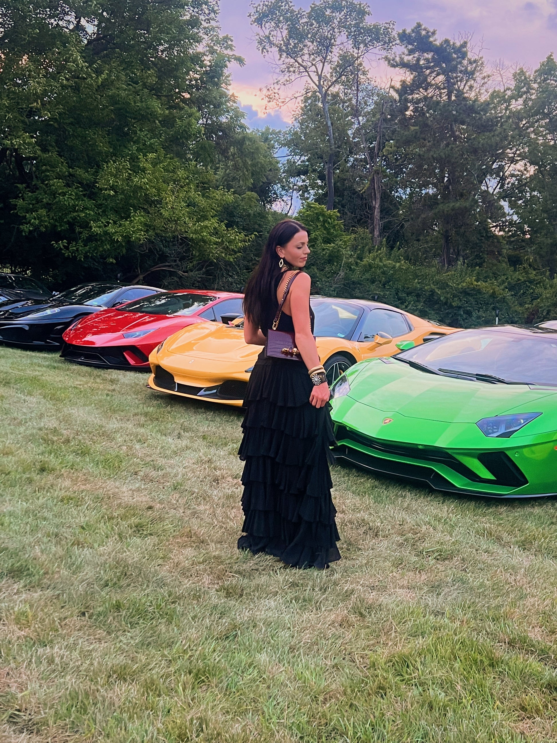 This dress features dramatic layered black ruffles, a high-low hemline, and that edgy yet ultra-feminine silhouette. A chic and unforgettable dress that instantly makes you feel luxurious and editorial.